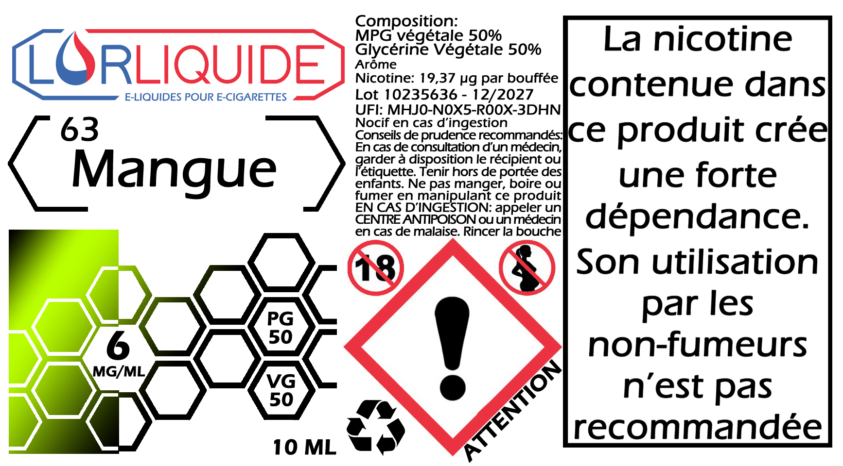 Produit à base de Nicotine. Dangereux. Respecter les précautions d’emploi.